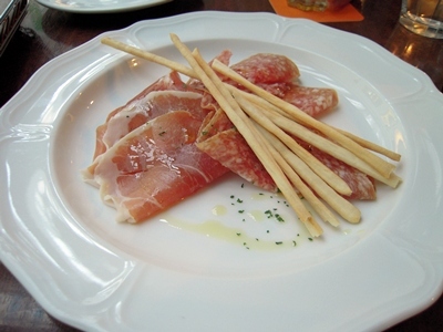 サラミと生ハムをつまみながら