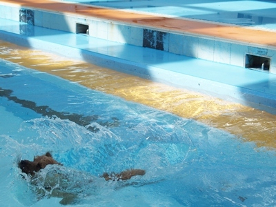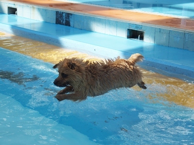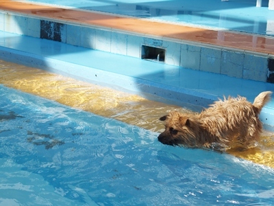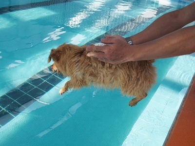 プールサイドでオロオロ、ピヨピヨ鳴く始末・・・