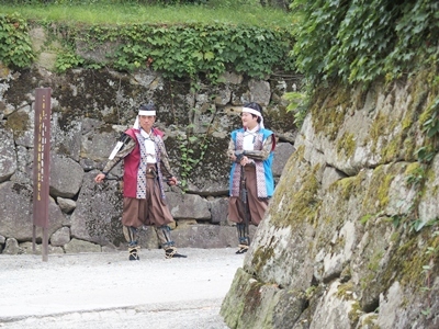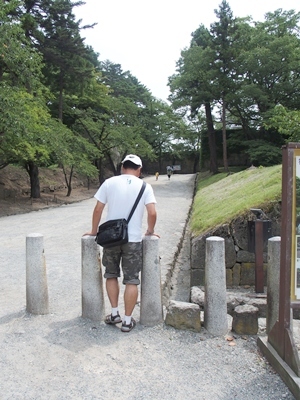 噴き出す汗を拭き拭き、城下町の町並みを楽しみ