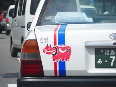 町を走るタクシーに あかべこ発見