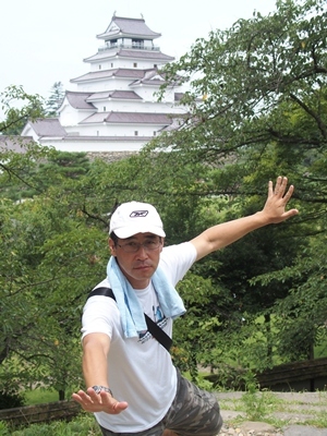 鶴ヶ城バックにおバカなショットですみません