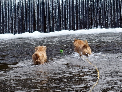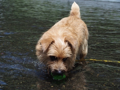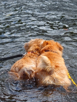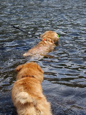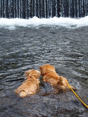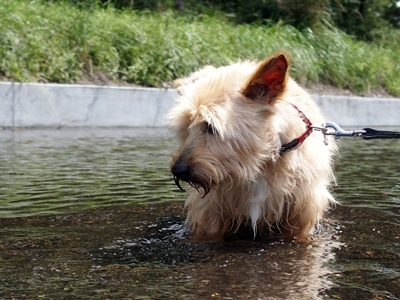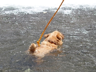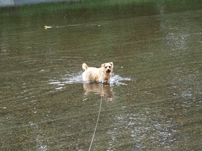 次は アンジュおねえちゃんが川泳ぎのお手本