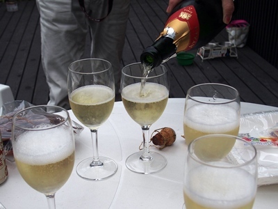 ずっと夕方から気持ちがいい外のテラスで飲み食いしていましたが