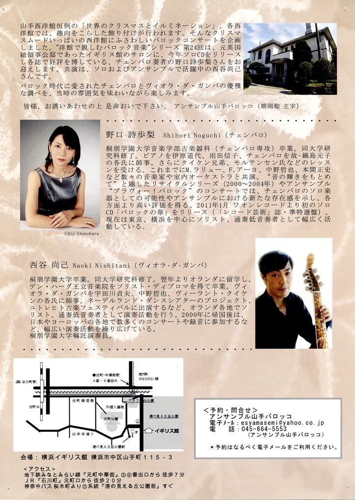 (コンサートの様子や楽曲解説をアンサンブル山手バロッコさんのHPでご覧頂けます)⇒http://www.geocities.jp/yamatebarocco/noguchi2011.html
