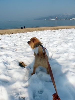 砂浜は雪が消えるのが早いですね