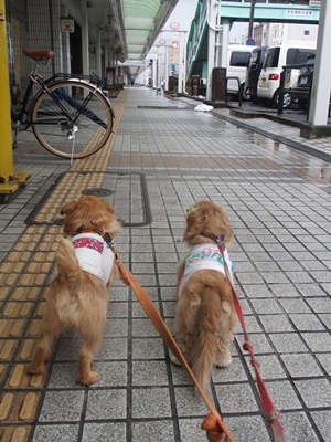 商店街のアーケード下をお散歩です。
