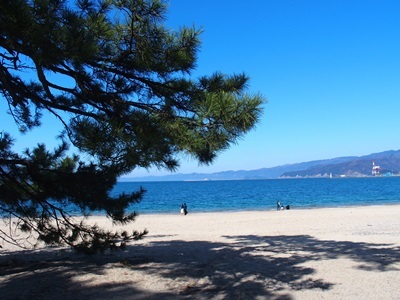 青空が広がる暖かな陽気の中、敦賀の名所『気比の松原』へ行って