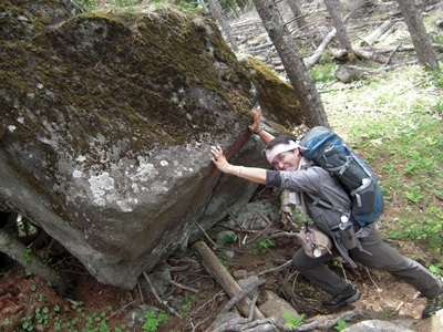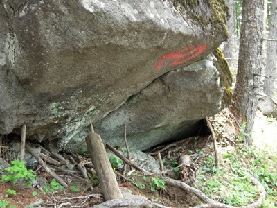 ん?? でっかい岩を小枝が支えてる!?
