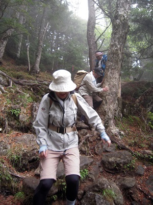 下山の最初は、しばらく厳しい岩場が続きますが
