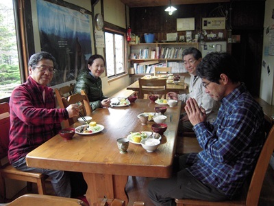 一夜明けた山小屋の朝…