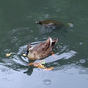 お池でカモさんと亀さんに会ったし