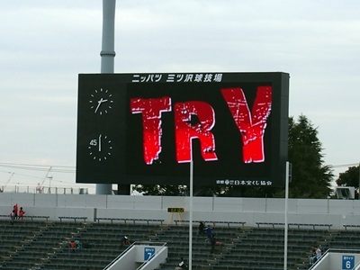 トライ後の電光掲示板には大きな 『 TRY!! 』の文字が・・