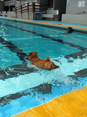 Woofの広いドッグランよりも、プールの方がお好きなようで‥