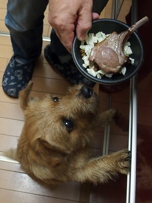 恒例の骨付きラム肉を焼いていていると