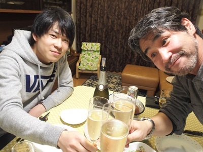 Mくんが持ってきてくれたシャンパンで!